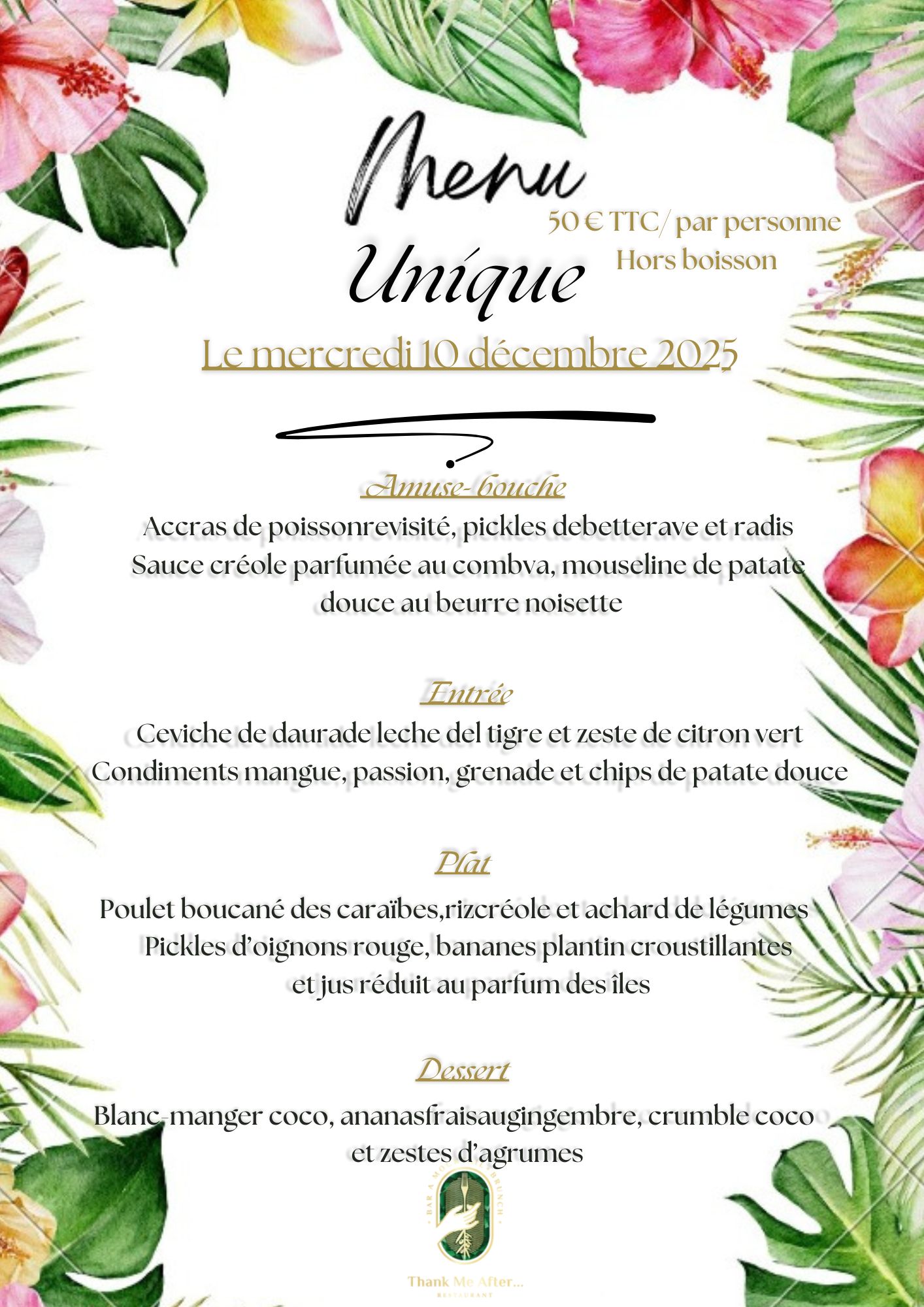 Thank Me After, est un restaurant gastronomique Halal à Lyon, a été créé en 2021 et propose à sa clientèle une cuisine fusion inspirée de saveurs et de techniques des coins du monde (Méditerranéen, Moyen-Orient, Asie, Amérique).